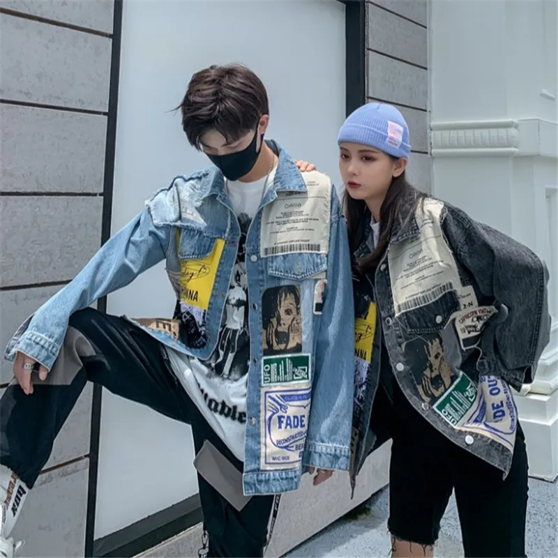 Denim Jacket Couple Models Ins Women S Spring And Autumn Personality Patch Jacket Bf Punk Jacket Wild Hong Kong Taste Denim Coat Aliexpress