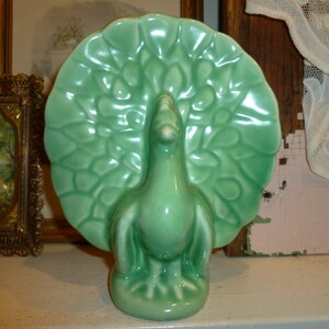 A Vintage Usa Green Pottery Peacock Wall Pocket Or Tabletop Etsy